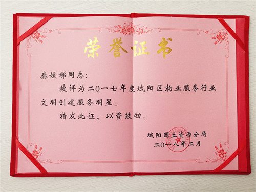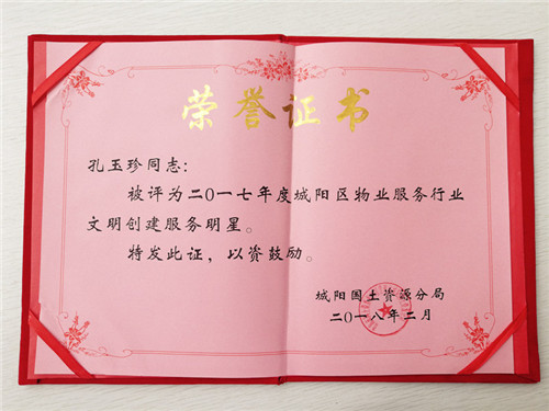 被評為“城陽區物業服務行業文明創建標兵企業”
