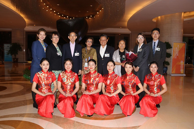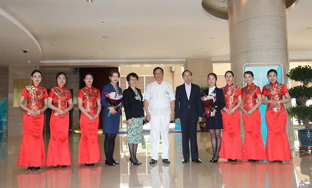 圖為酒店總經理張曉東女士、副總經理秦孟基、呂功濤先生及酒店管理層接待