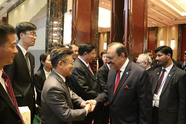 巴基斯坦總統馬姆努恩·侯賽因(Mr.Mamnoon Hussain)與中巴友協、中國國際文化傳播中心貴賓握手道別