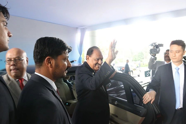 圖為酒店總經理張曉東女士迎接巴基斯坦總統馬姆努恩·侯賽因(Mr.Mamnoon Hussain)