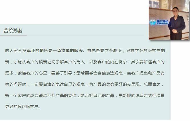 各項目經(jīng)理也根據(jù)自身從業(yè)多年的經(jīng)驗向大家進行了細(xì)致入微、引人入勝的分享。他們通過一個個真實、生動的案例展示了自己如何不斷摸索探尋機會,遇到困難絕不后退,鍥而不舍簽約成功等一系列過程。這些成功案例充滿了正能量,也凝聚著汗水與心血,得到了在聽營銷人員的共鳴,贏得了陣陣掌聲。
