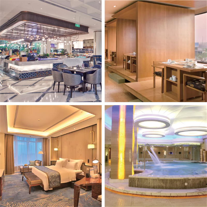 溫德姆酒店目前擁有300余間客房,配有鑫江海港中餐廳、水青咖啡苑西餐廳、漢江韓國料理;健身、水會等運動康養設施齊全,可滿足鑫家人不同的享受需求,總以溫情相待,無一不在講述著追求美好的溫暖故事。