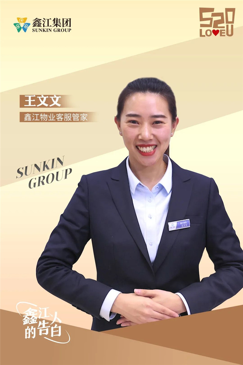 鑫江物業客服管家王文文,始終堅持鑫江物業“您的滿意是我們永恒的追求”的服務宗旨,把對你的愛,藏在了一個個故事里,藏在了一雙雙勤勞的雙手里。每一次溫情的付出,都是心的交匯,是愛的洪流。——這,是我們給你的溫柔的愛。