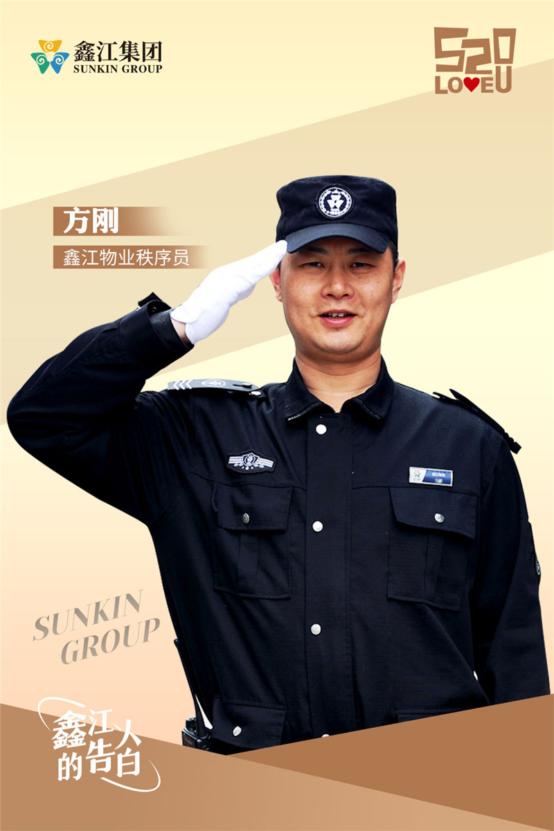 鑫江物業的秩序員方剛,他身上肩負的責任,是保障業主的居家安全,嚴格落實工作標準,以最高執行力,堅守家園。鑫江人愿付出所有的熱血與真情,給予你最高標準的安心守護。——這,是我們給你的安心的愛。