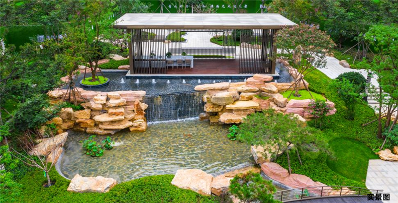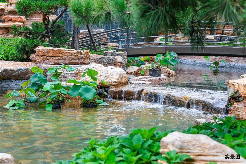 園林立意取自王維《輞川圖》,將周邊自然山水環境、地理特征融入到設計中,把華子岡、歆湖、臥虹橋、東峰秀色、白石灘等二十景鋪展開,凸顯“閑適自在”的生活意境。層層遞進間,又別有洞天,烏柏、紫薇、泰山松等多種名貴苗木經“全國海選”并全冠移植到園林中,移步異景,滿園都是關不住的自然風情。