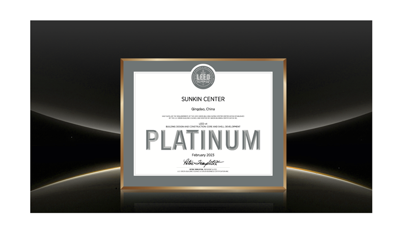 2023年2月,鑫江中心榮膺LEED鉑金級認證,成為山東省2023年第一個LEED新建建筑寫字樓鉑金級認證項目(青島寫字樓鉑金認證最高分),也是西海岸首座獲得此殊榮的寫字樓。