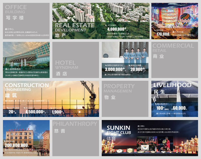 鑫江集團(tuán)成立于1995年,以助力城市綜合發(fā)展、提升高質(zhì)量美好生活品質(zhì)為企業(yè)己任,是一家集地產(chǎn)、寫字樓、商業(yè)、酒店、物業(yè)、建筑、體育、民生、慈善于一體的多元化集團(tuán)企業(yè),2018年企業(yè)銷售值突破101億元,納稅7.03億元。鑫江集團(tuán)堅(jiān)持高質(zhì)量發(fā)展,勇于創(chuàng)新、整合業(yè)態(tài)資源,深度參與城市發(fā)展,為城市綜合發(fā)展賦能,不斷探索市民對美好生活的追求,全面筑就城市發(fā)展綜合運(yùn)營商的新格局,與島城市民共建美好鑫生活。